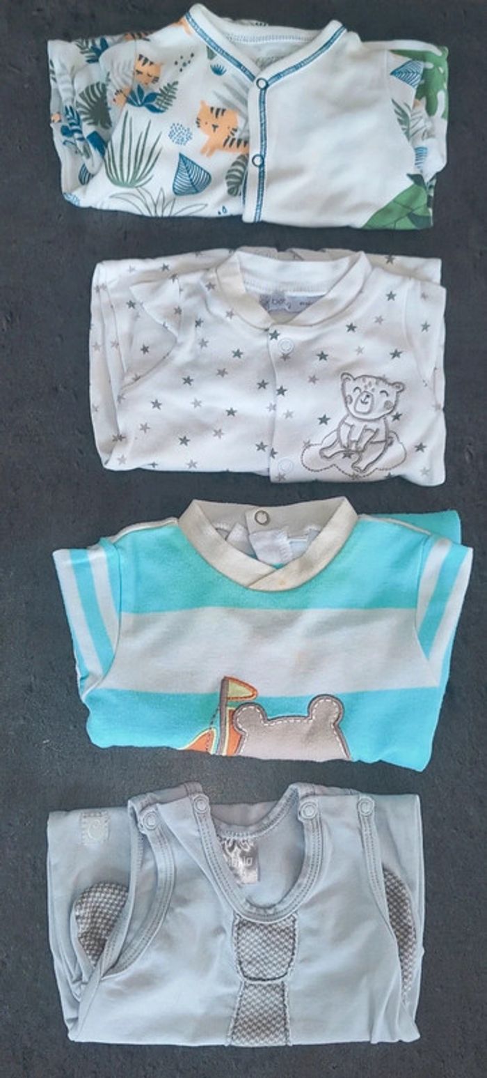 Bonjour, je vends ce lot de quatre pyjamas dont un à manches courtes et 3 à manches longues. • Taille : 1 mois • Marque : Gémo / Luggi / Pinokio • État : très bon état (petite tâche, voir photo 3). • Couleur : blanc / bleu / gris / vert N'hésitez pas à faire un lot (prix en réduction). 📉 Envoie rapide et soigné (de préférence Mondial Relay ⚠️). 📦 Pour de plus amples informations, envoyez-moi un message privé sans hésiter. 😁