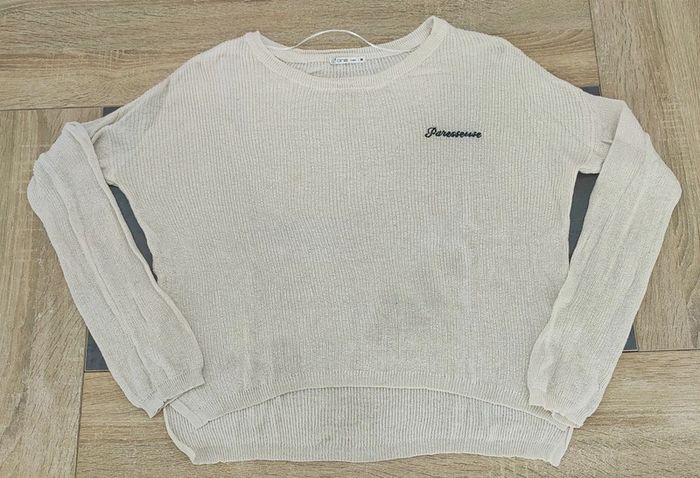 Bonjour, je vends ce pull femme écrit paresseuse. • Taille : M • Marque : Gémo • État : très bon état • Couleur : blanc / noir N'hésitez pas à faire un lot (prix en réduction). 📉 Envoie rapide et soigné (de préférence Mondial Relay ⚠️). 📦 Pour de plus amples informations, envoyez-moi un message privé sans hésiter. 😁