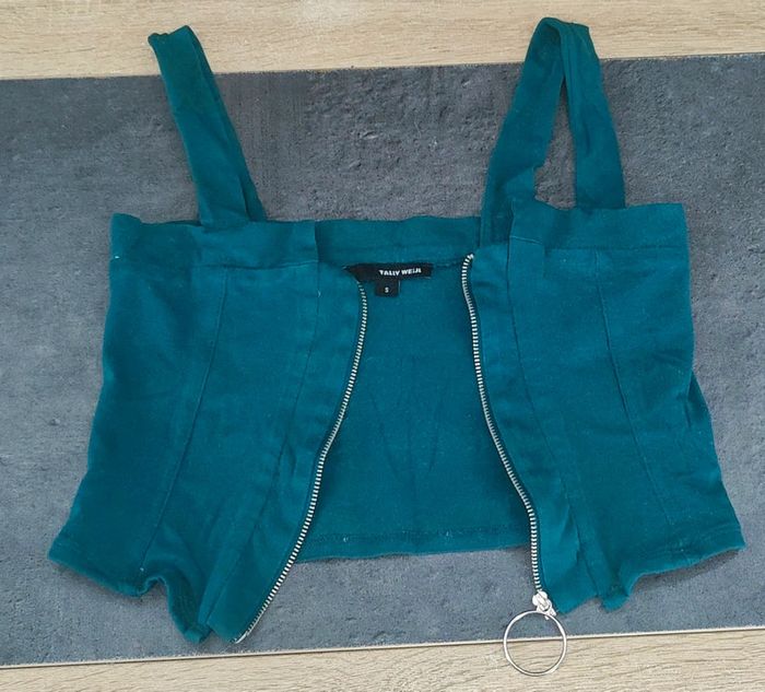Bonjour, je vends ce top court avec fermeture sur l'avant. • Taille : S • Marque : Tally Weijl • État : très bon état • Couleur : bleu canard N'hésitez pas à faire un lot (prix en réduction). 📉 Envoie rapide et soigné (de préférence Mondial Relay ⚠️). 📦 Pour de plus amples informations, envoyez-moi un message privé sans hésiter. 😁