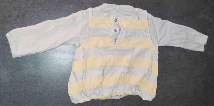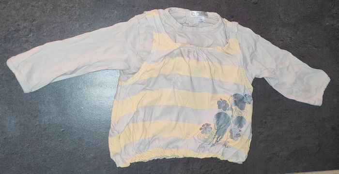 Bonjour, je vends ce t-shirt à manches longues. • Taille : 9 mois • Marque : Kitchoun • État : très bon état • Couleur : blanc / jaune N'hésitez pas à faire un lot (prix en réduction). 📉 Envoie rapide et soigné (de préférence Mondial Relay ⚠️). 📦 Pour de plus amples informations, envoyez-moi un message privé sans hésiter. 😁