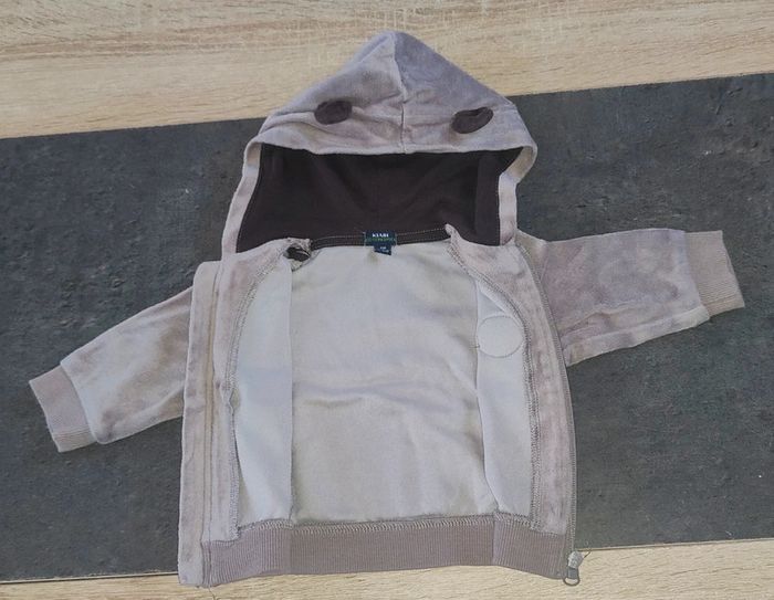 Bonjour, je vends ce gilet à capuche. • Taille : 6 mois • Marque : Kiabi • État : très bon état • Couleur : gris / noir N'hésitez pas à faire un lot (prix en réduction). 📉 Envoie rapide et soigné (de préférence Mondial Relay ⚠️). 📦 Pour de plus amples informations, envoyez-moi un message privé sans hésiter. 😁