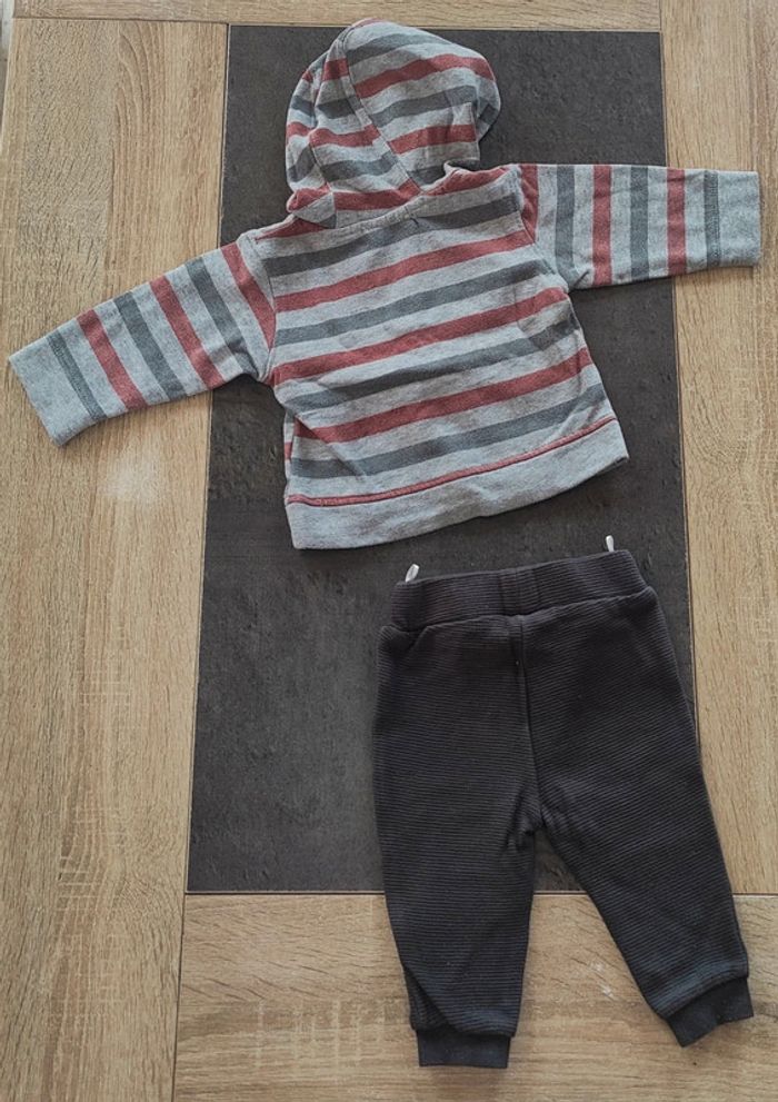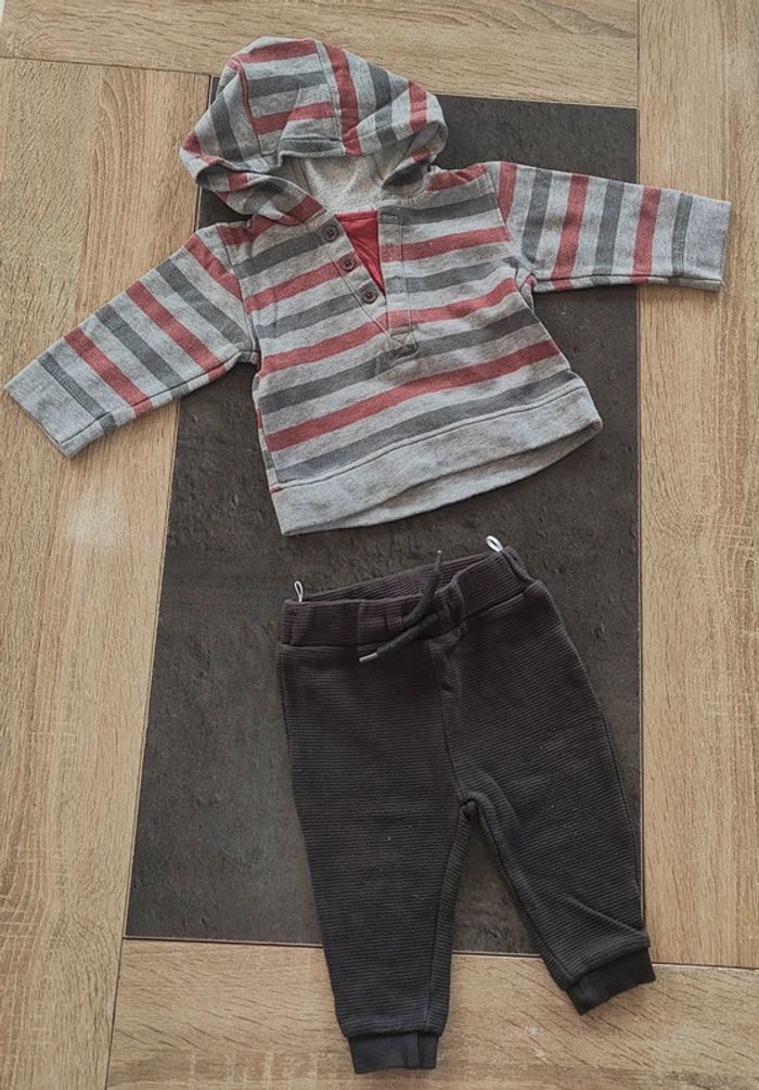 Bonjour, je vends cet ensemble composé d'un pantalon et d'un sweat à capuche. • Taille : 9 mois • Marque : C&A / Kitchoun • État : très bon état • Couleur : gris / rouge N'hésitez pas à faire un lot (prix en réduction). 📉 Envoie rapide et soigné (de préférence Mondial Relay ⚠️). 📦 Pour de plus amples informations, envoyez-moi un message privé sans hésiter. 😁