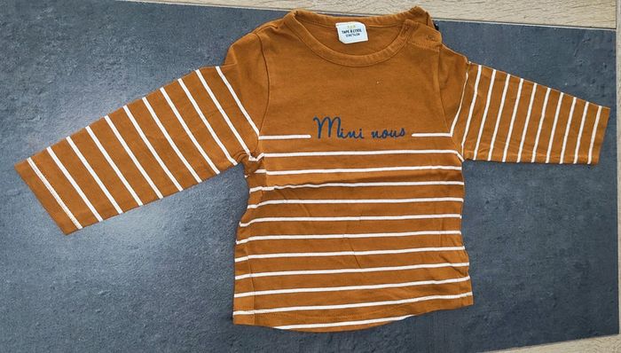 Bonjour, je vends ce t-shirt à manches longues. • Taille : 12 mois • Marque : Tape à l'oeil • État : très bon état • Couleur : marron (cannelle) / blanc / bleu marine. N'hésitez pas à faire un lot (prix en réduction). 📉 Envoie rapide et soigné (de préférence Mondial Relay ⚠️). 📦 Pour de plus amples informations, envoyez-moi un message privé sans hésiter. 😁