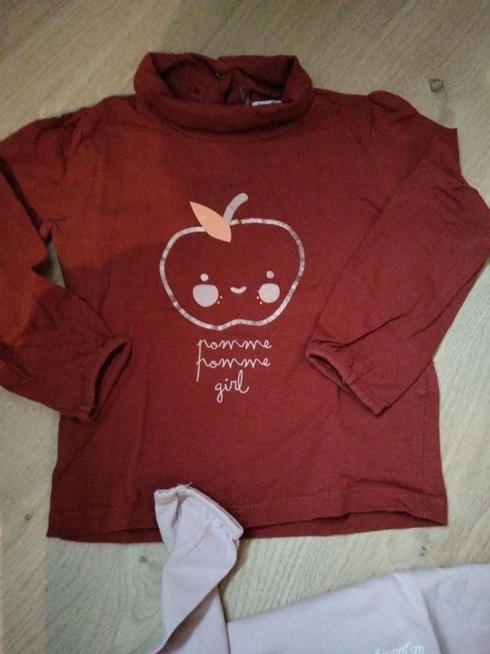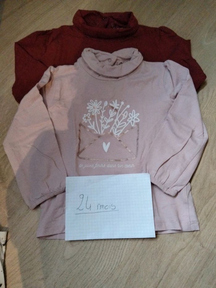 2 sous pull 24 mois Gémo Sans tâche ni trous Tissus léger, 2 pressions dans le dos L'un bordeaux, l'autre rose clair