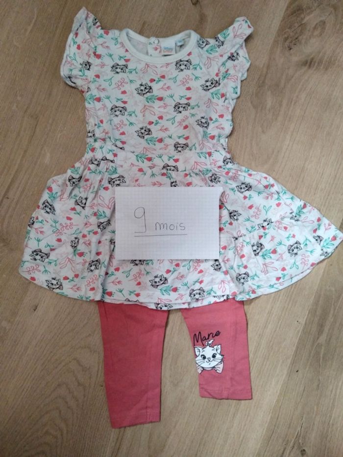 Ensemble Disney Marie taille 9 mois Robe MC et legging long rose foncé Bon état