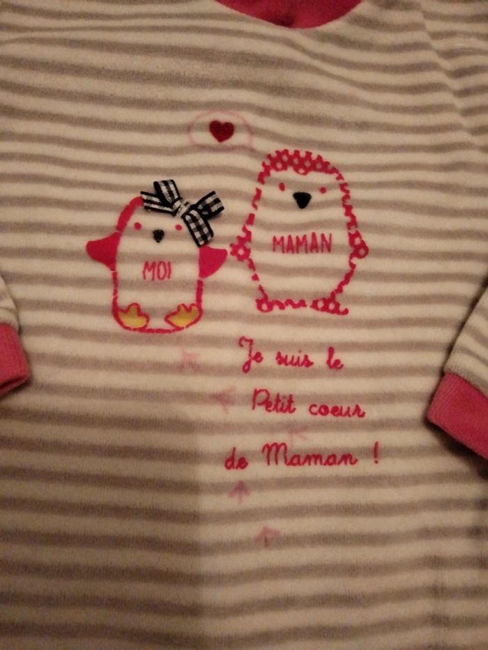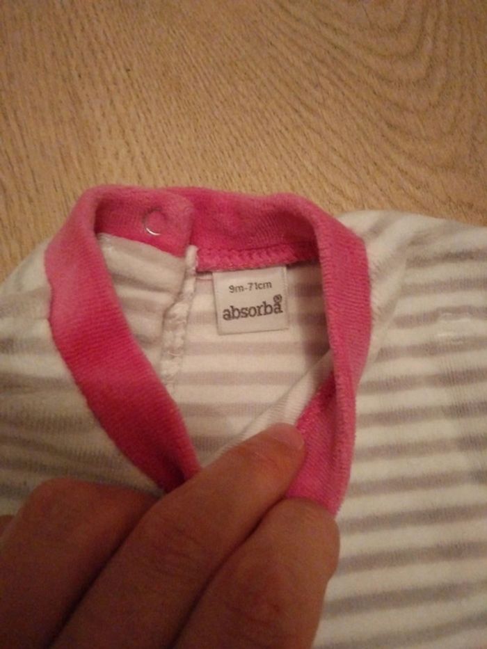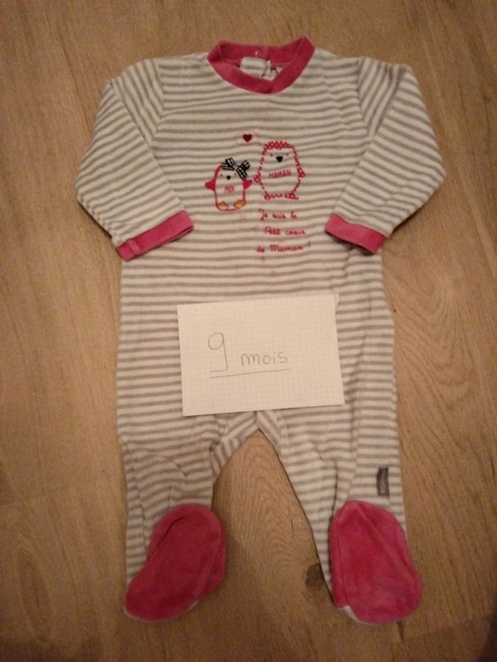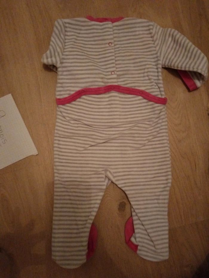 Pyjama en velours taille 9 mois marque absorba Rayé gris et blanc avec touche de rose fushia Pas de trous ni tâches