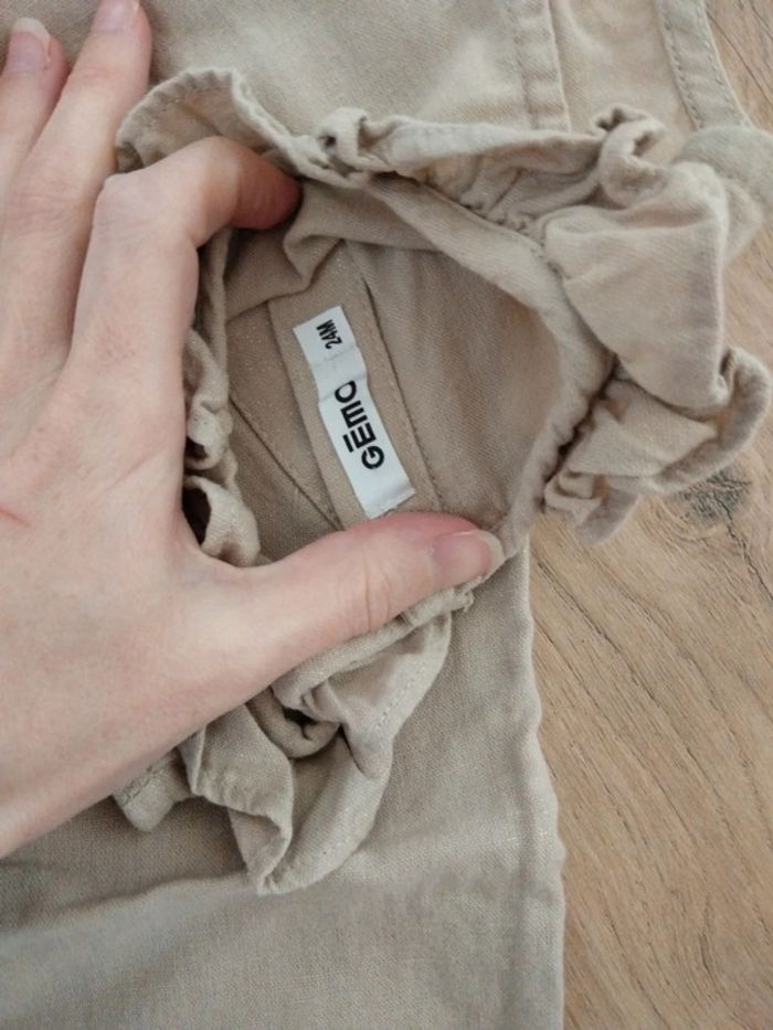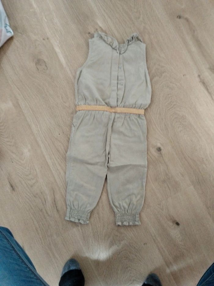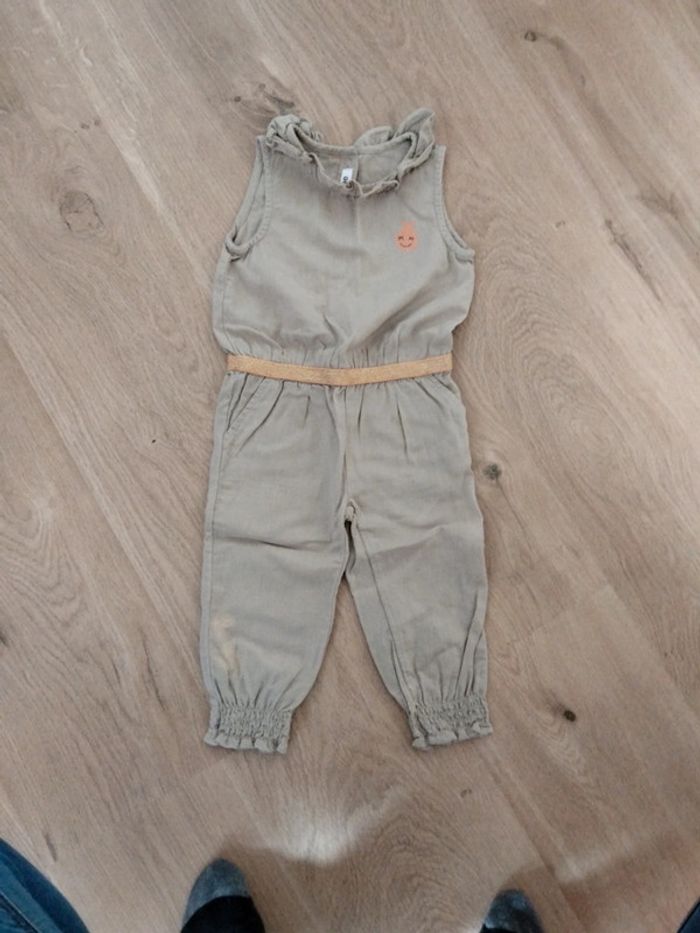 Salopette pantalon beige taille 24 mois Attention tâche sur le bas de la jambe droite voir photos.