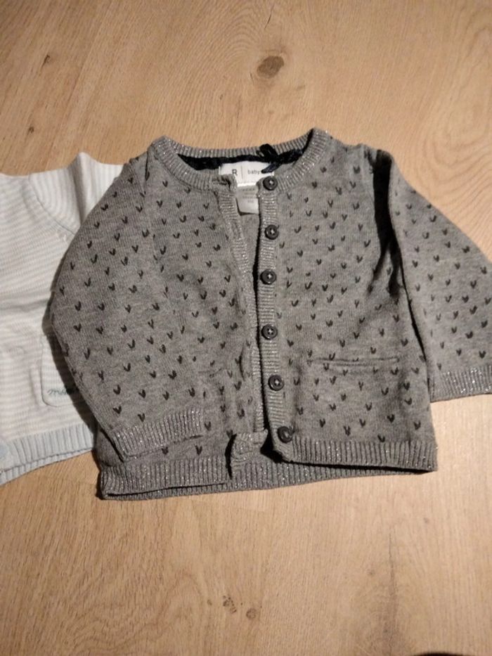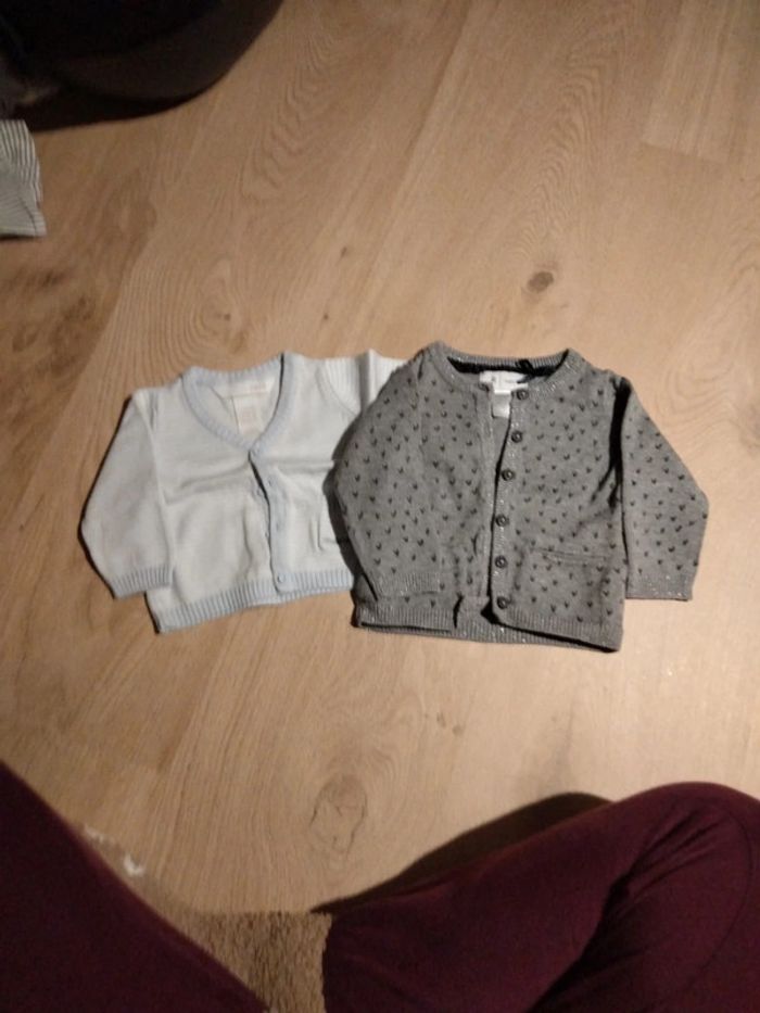 2 gilets L'un marque la redoute gris taille 1 mois L'autre marque h&m taille 0-1 mois