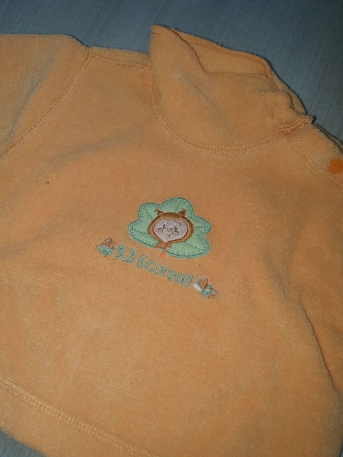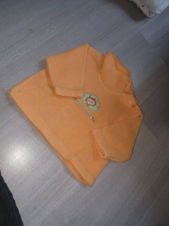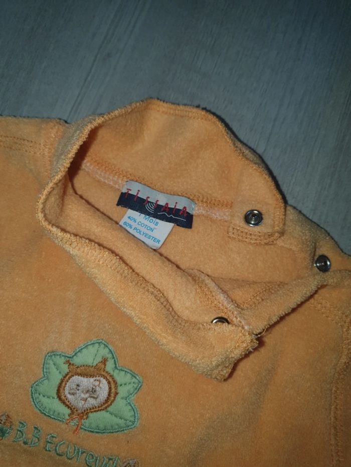 Pull orange effet un léger d'éponge taille 1mois marque Tisaia TBE.