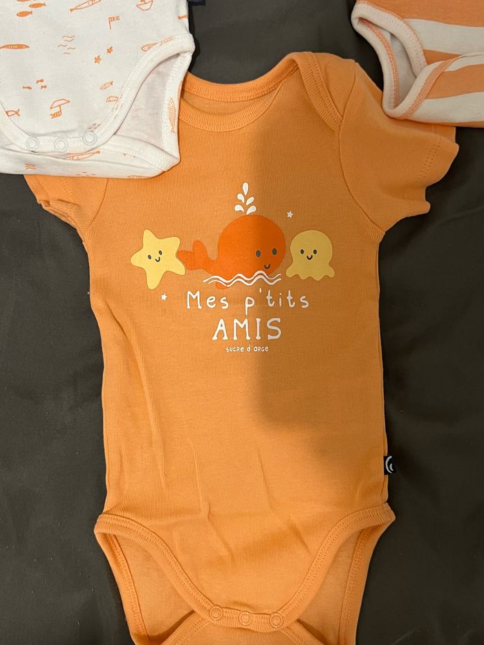 Body sucre d’orge jamais porté de taille 6 mois. Très bon état, laver avant la vente
