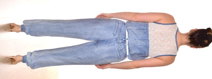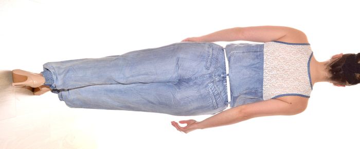 combinaison pantalon sans manches blanc dentelle et bleu jean clair T42/44 - photo numéro 4