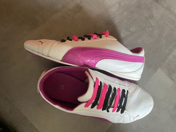Baskets puma blanches et violettes pointure 40,5 Portées mais encore en bon état Les lacets ne sont pas ceux d’origine #pumafemme40 #sneakerspumafemme40