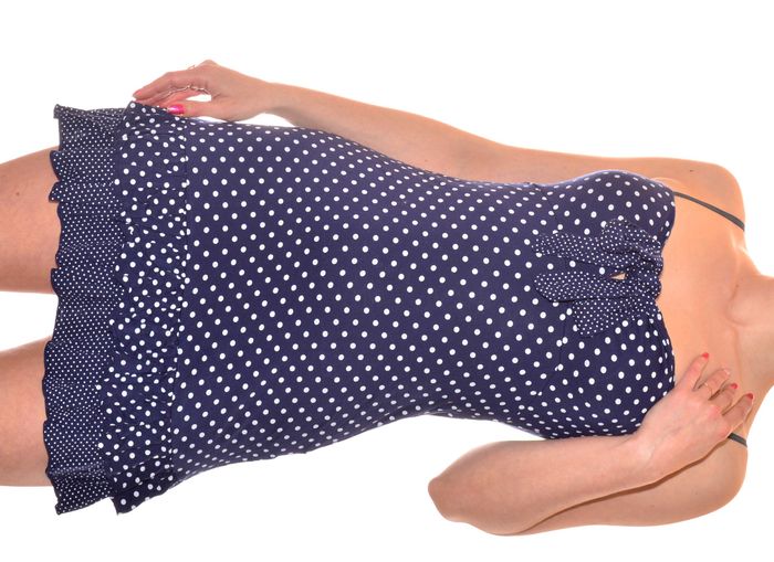 robe moulante sexy féminine bleu à pois blanc à bretelles taille M élastiquée - photo numéro 1