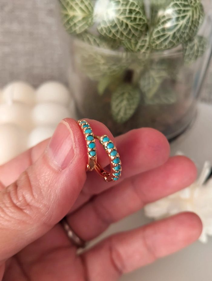 Composition mini créoles (6 unités) en acier inoxydable turquoise et doré - photo numéro 10