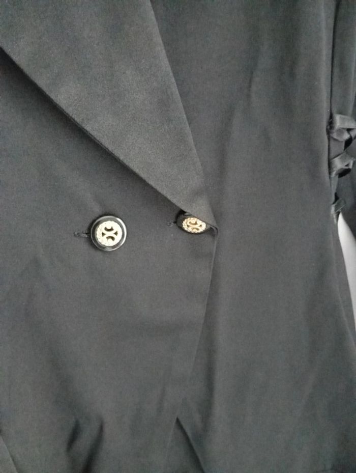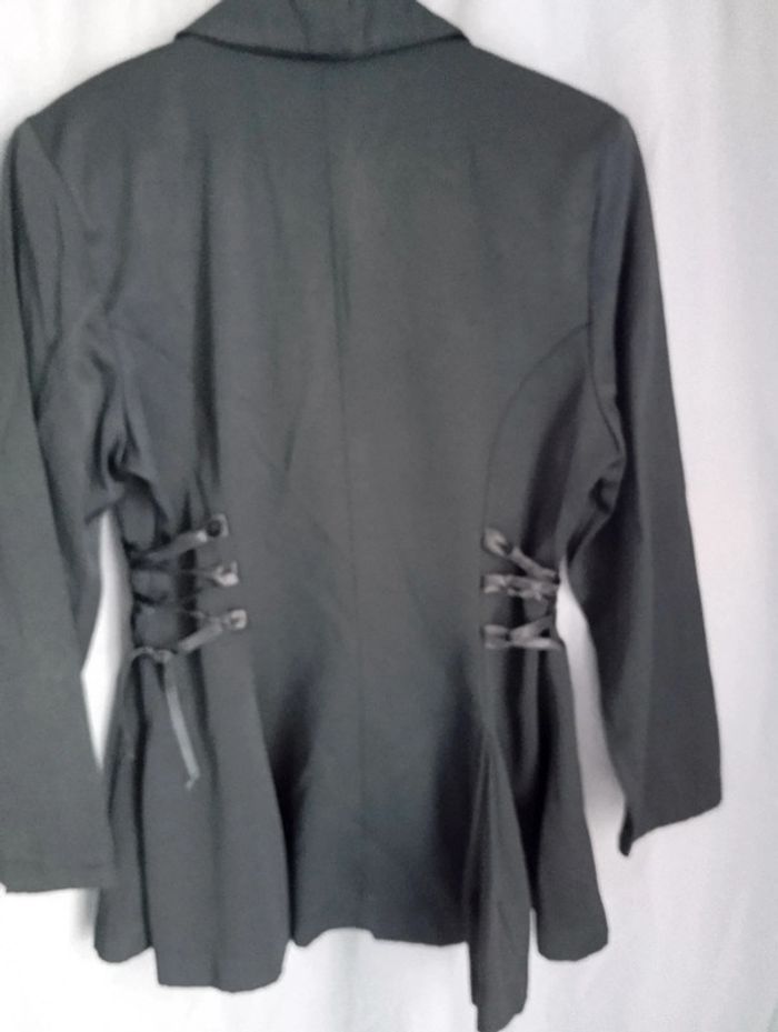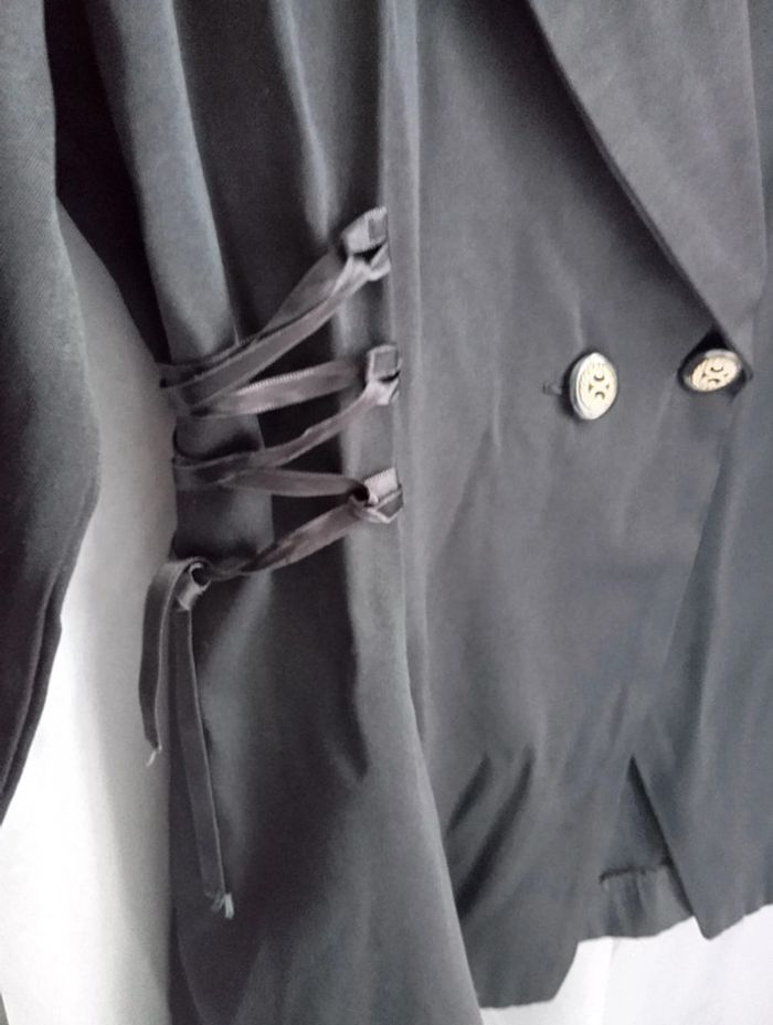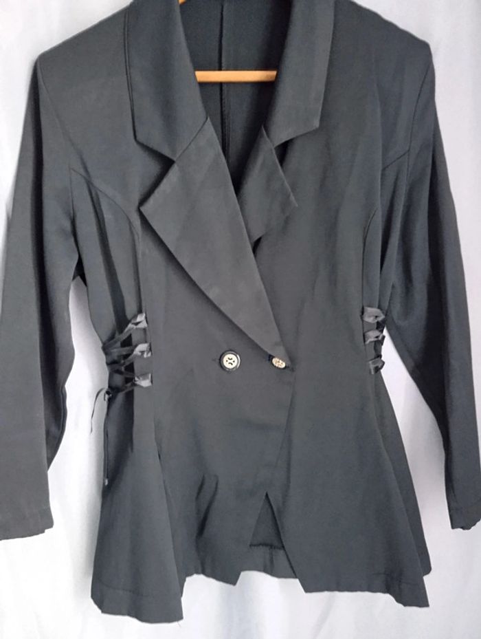 Veste cintrée noire, ferme avec 2 boutons, details "lacets" des 2 côtés