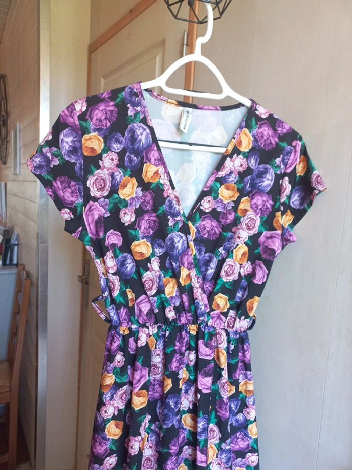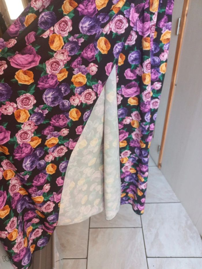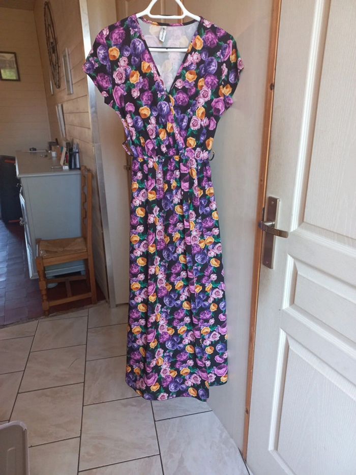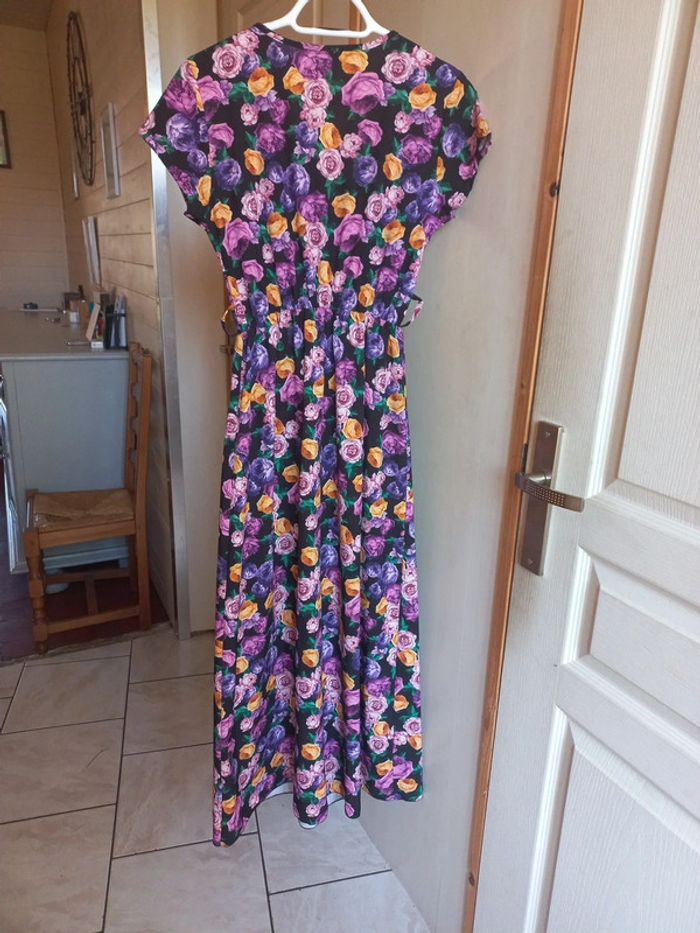 Robe longue imprimée Fleurs Noire violet jaune Taille M Sans la ceinture