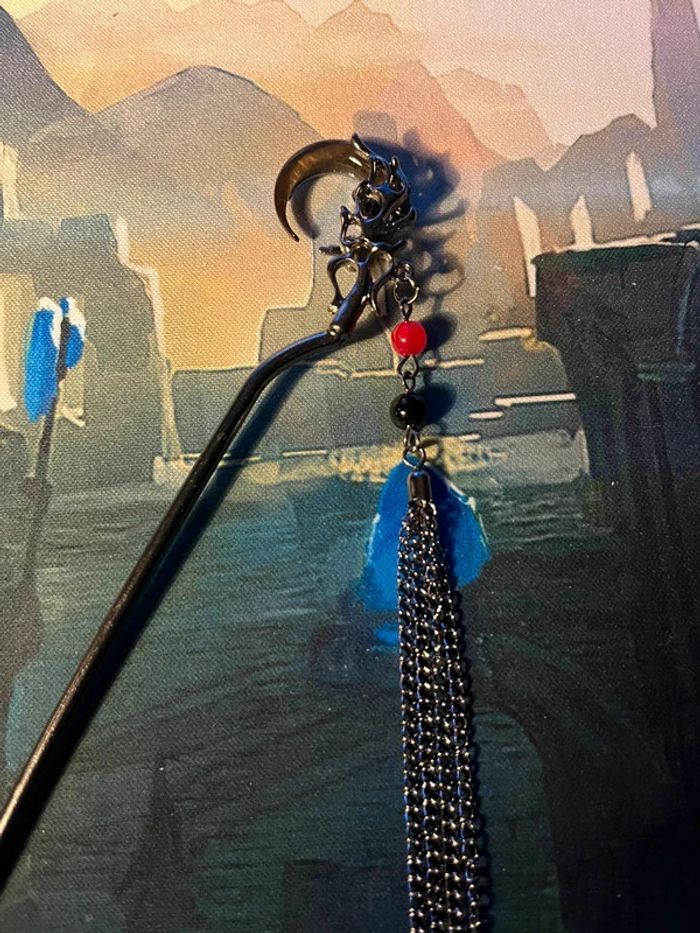 Bâton à chignon noir lune métallique - photo numéro 1