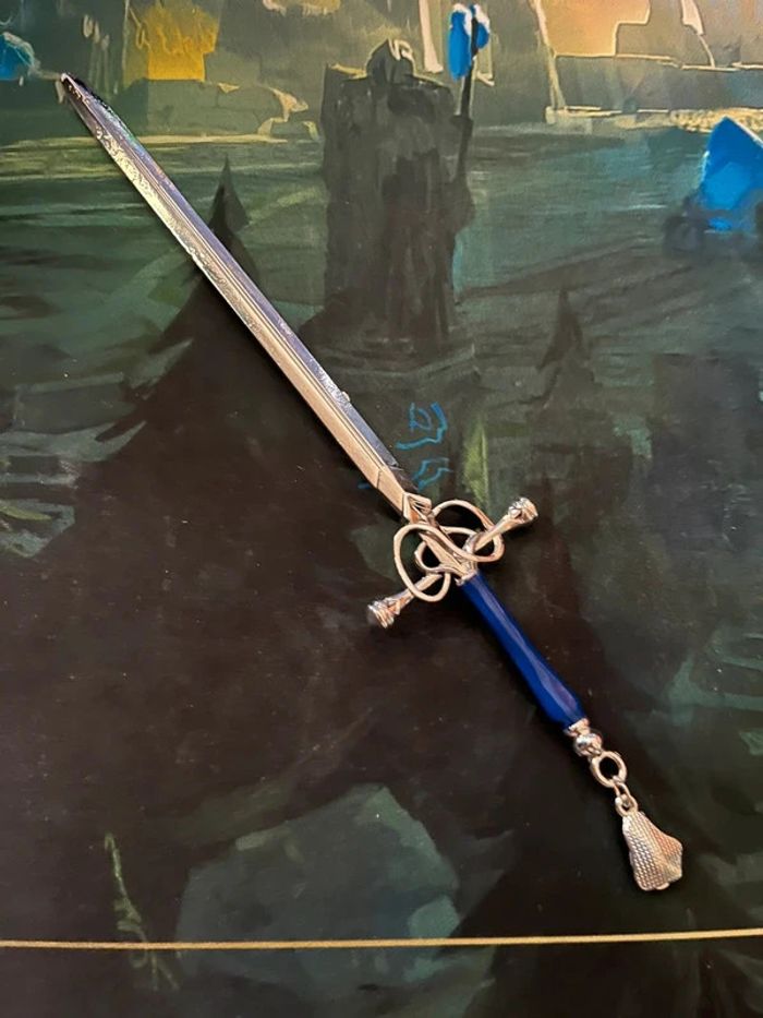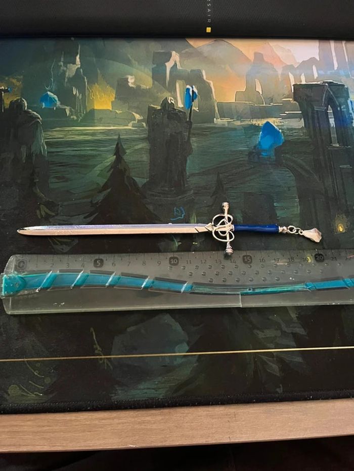 Bâton à chignon épée argentée, et bleu - métal - 20 cm - neuf jamais porté