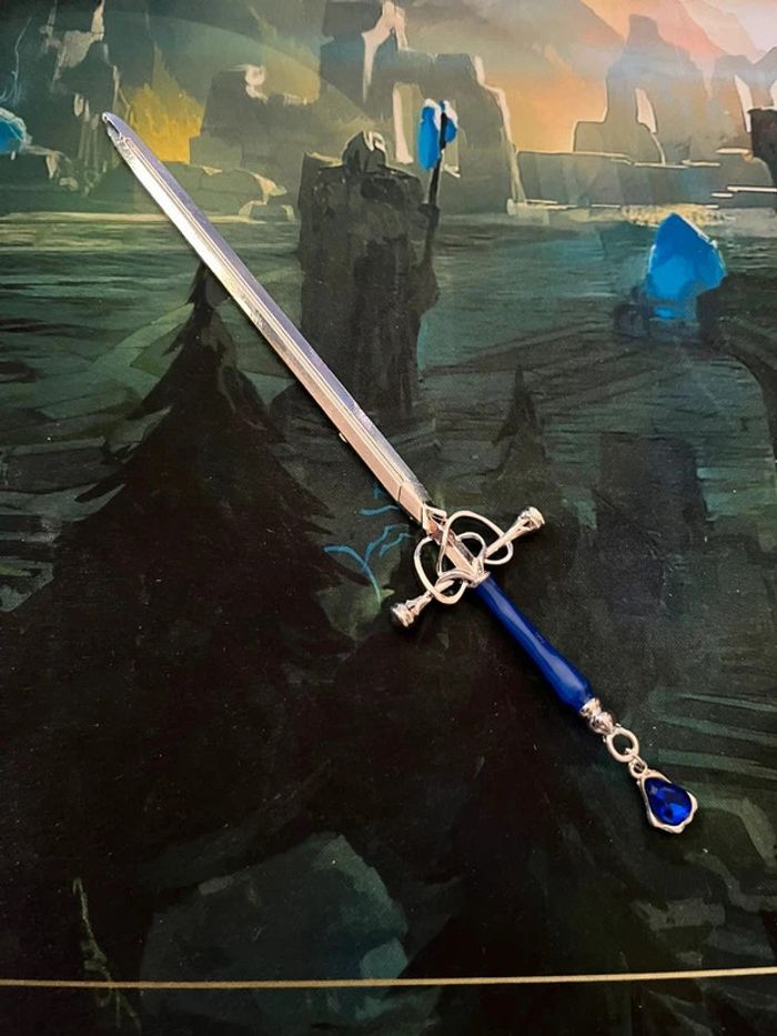 Bâton à chignon épée argenté & bleu - photo numéro 1