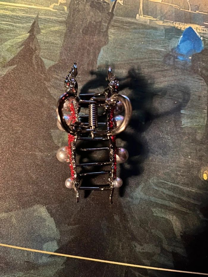 Pince à cheveux dragon noir et strass rouge - métal - neuf jamais porté - 8x4 cm
