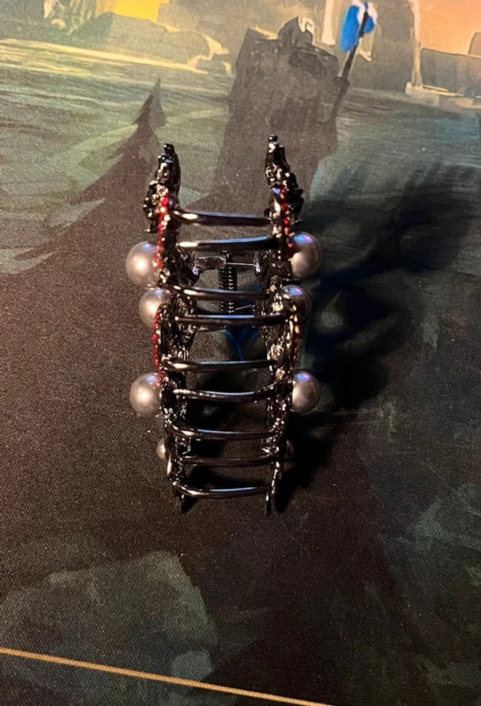Pince à cheveux dragon noir, strass rouge - photo numéro 1