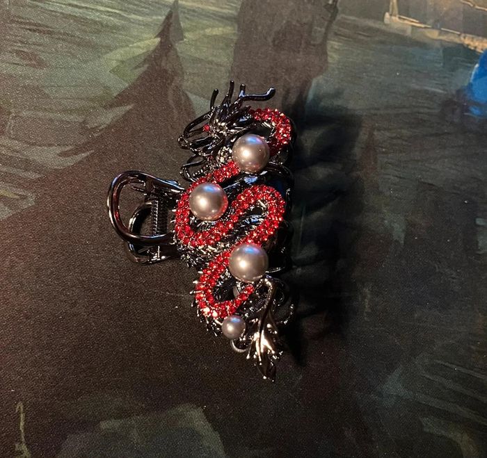 Pince à cheveux dragon noir, strass rouge - photo numéro 2