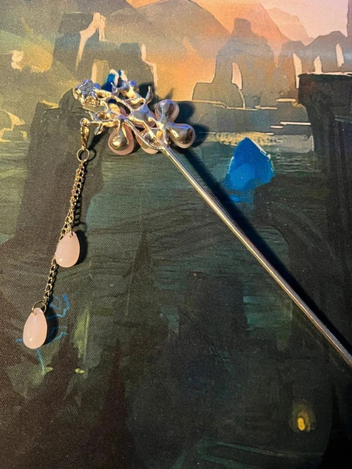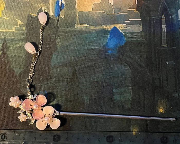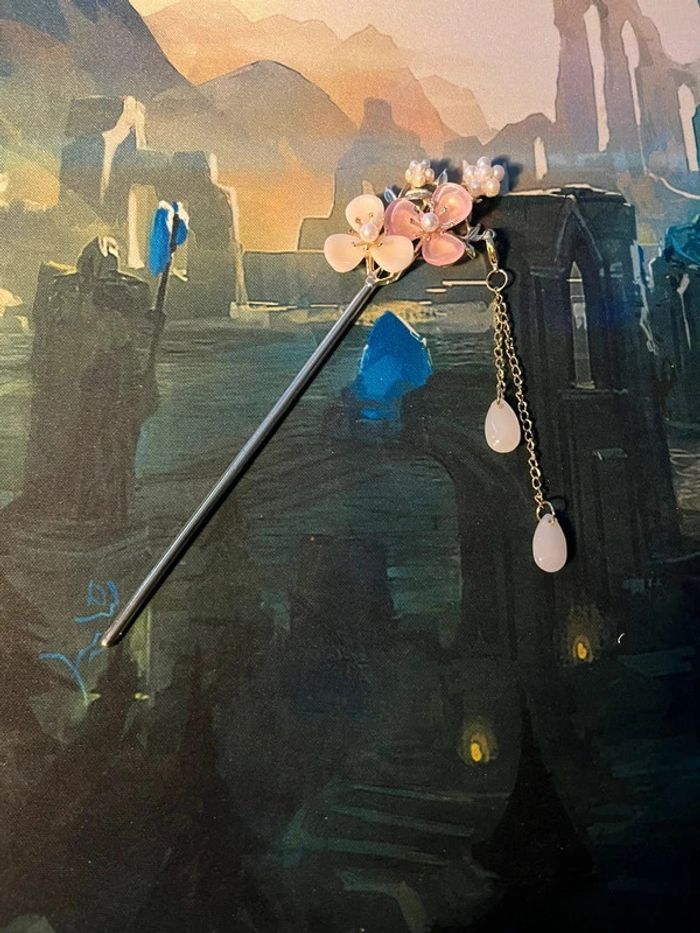 Bâton à chignon argentée fleure blanche et rose - photo numéro 4