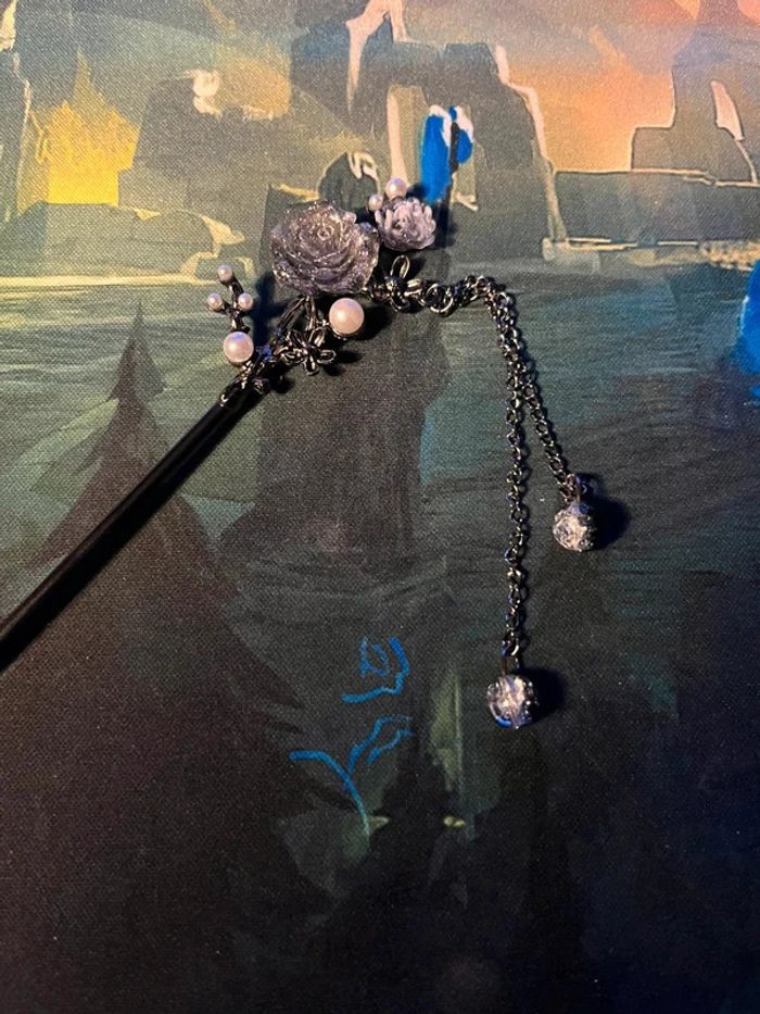 Bâton à chignon noir fleur enneigée perlée - photo numéro 4