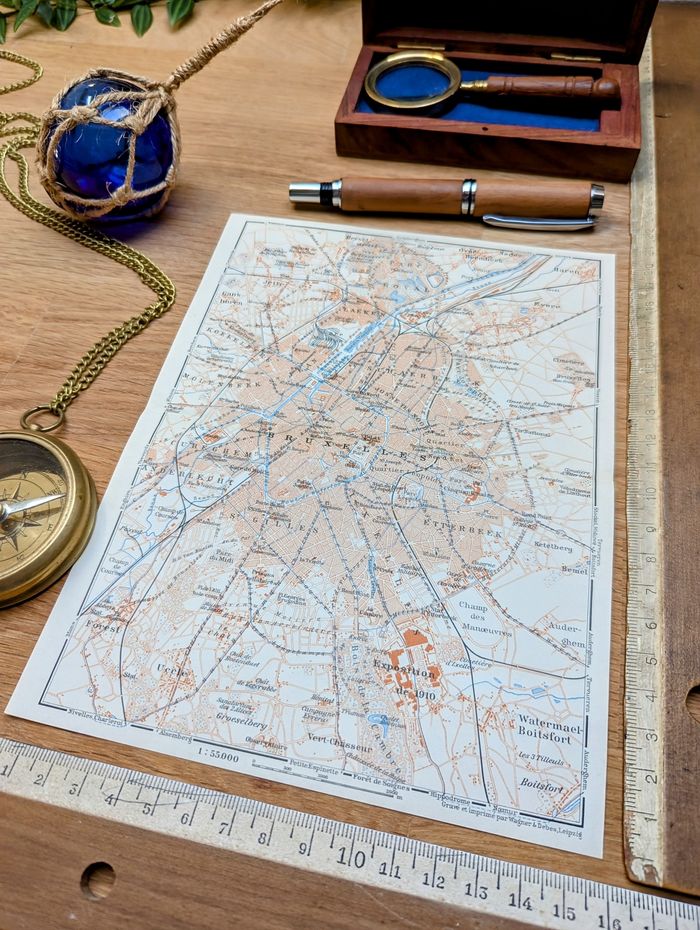 ⚠️Cadre non inclus⚠️ 🧭 Affichons Les Oubliées ! 🧭 Pour une décoration Rétro Vintage Authentique, à s'offrir ou à offrir. Voyagez dans le temps et partez explorer Bruxelles, Belgique, avec cette magnifique carte détaillée et colorée, imprimée en 1910 par Wagner&Debes à Leipzig. Il s'agit d'une impression ancienne authentique et non d'une reproduction moderne. Nous vendons uniquement des impressions originales qui ont traversé le temps avec un véritable aspect patiné. 📏 Dimensions carte : L16cm x H21cm 📦Envoi rapide, protégé et soigné Les affiches sont envoyées à plat dans une pochette plastifiée et une enveloppe carton rigide. Emballages soignés et personnalisés N'hésitez pas à nous demander d'insérer un message personnalisé si vous souhaitez offrir cette commande pour une occasion spéciale. 🔎 Les articles sont notés en "bon état" au vu de leurs âges, bien évidemment ils présentent certaines marques du temps passé. Les photos vous permettront de voir l'état réel car l'objet en photo sera celui expédié, il n'y a pas de stock. 🚚 Livraison France et internationale 🔑 Mots-clés : #carteancienne #geographie #ireland #deutschland #osterreich #italia #portugal #espana #decorationvintage #decorationinterieur #lithographie #botanique #anatomique #planancien #carte #illustration #map #monde #voyage #cadre #vintage #plante #flower #botanical #science #green #oldstyle #geographique #decorationvintagestyle #cadrevintage #planche #ville #œuvre #postercolor #geologie #reliefs #fleuves #affiche #retro #courants #vents #navigation #exploration #voyageurs #sciences #expedition #découvertes #vintagedecor #objetvintage #frenchbrocante #slowhome #explorateurs #cadeauanniversaire #cadeau #france #cabinet #curiosite #world #belgium #capital #europe #nivelles #uccle #etterbeek #laeken #anderlecht #Manneken # 1 64