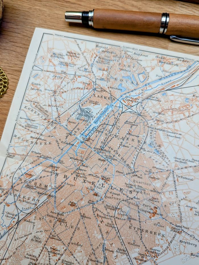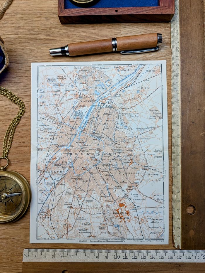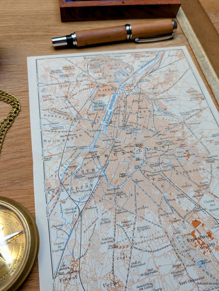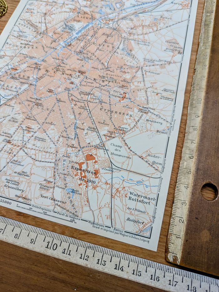 Imprimée en 1910, carte de Bruxelles, Vintage Authentique (cadre non inclus ) - photo numéro 5