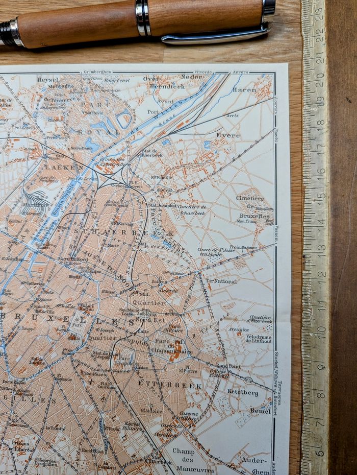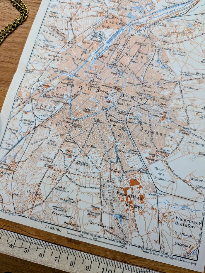 Imprimée en 1910, carte de Bruxelles, Vintage Authentique (cadre non inclus ) - photo numéro 9