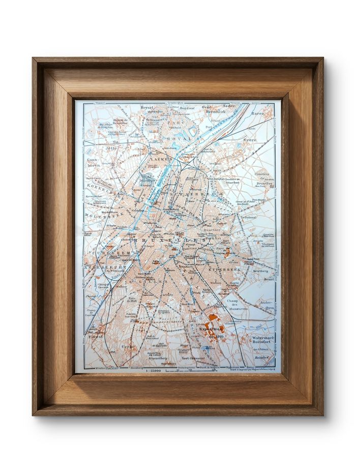 Imprimée en 1910, carte de Bruxelles, Vintage Authentique (cadre non inclus )