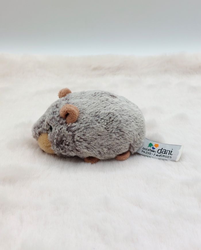 Mini peluche doudou marmotte marron chiné blanc Créations DANI yeux verts 10 cm - billes dans le corps Bon état, tout doux - léger frottement œil droit et légère tache jaune au dos de l'étiquette (photo 6,7) Ne convient pas à un enfant en bas âge Le support noir n'est pas vendu avec, c'est juste pour bien montrer la peluche Envoi rapide Réf A12306 #minotresor #peluche #dani #marmotte #plush