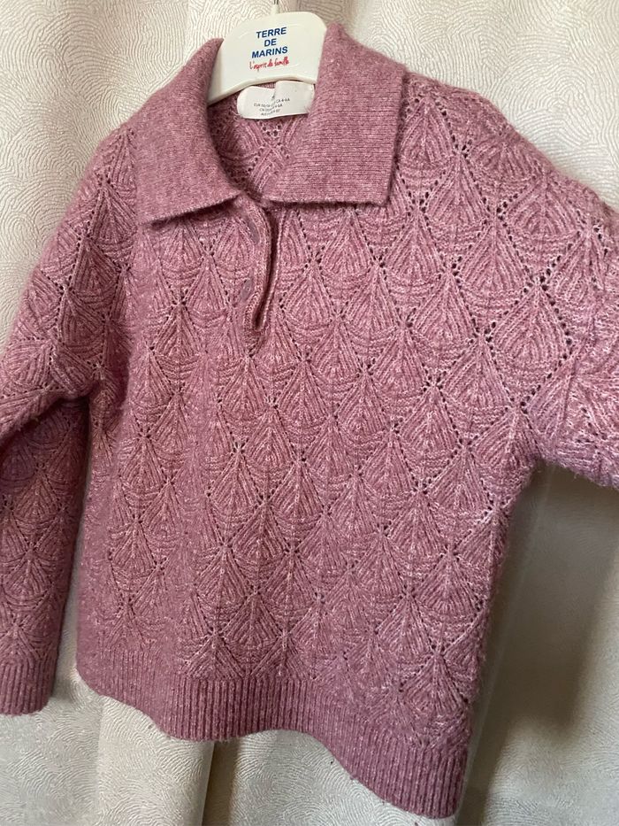 Très joli pull chaud Point fantaisie coquilles lilas col polo Taille 6 ans 110/116 cm H&M 52% polyester 41% acrylique 4% laine 3% elasthane