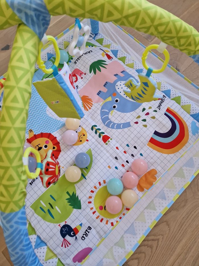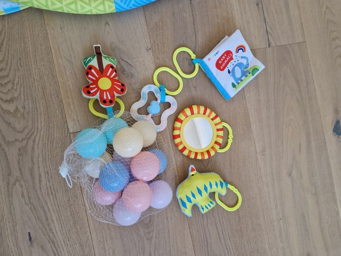 Tapis d'éveil avec balles et accessoires suspendus Jamais servi mais une balle manquante que mon fils a fait disparaître.