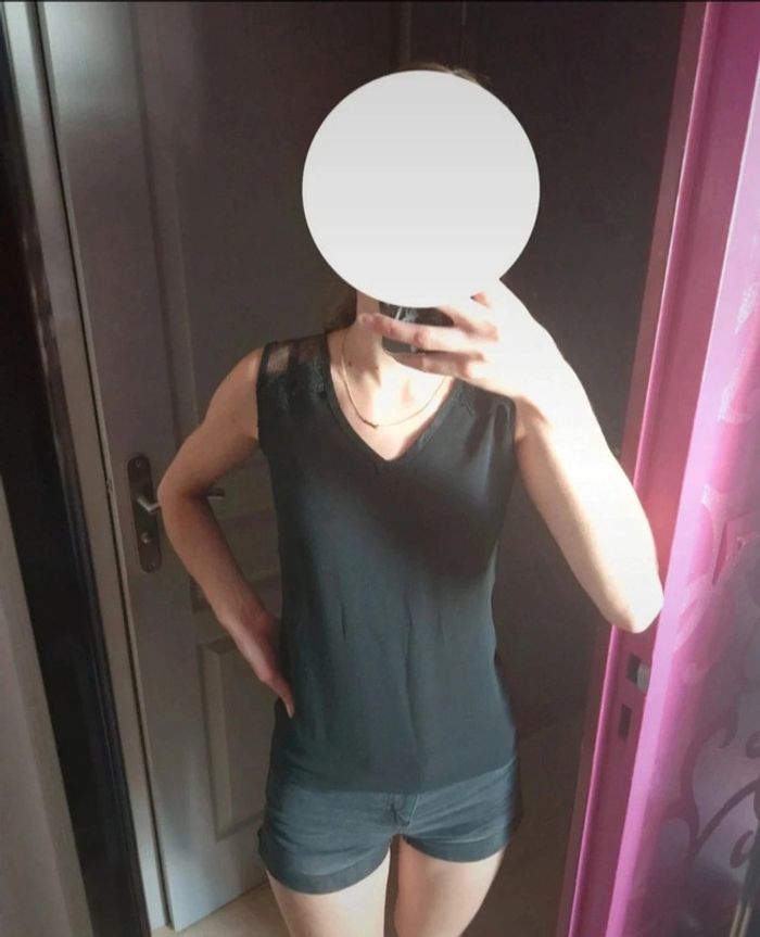 Débardeur neuf sans étiquette. Porter uniquement pour les photos. Il y a de la transparence sur les épaules et dans le dos ainsi qu'une l'ouverture. Naf naf Taille XS/34 #femmeXSromane977 👨‍👩‍👧‍👦Dressing familial👨‍👩‍👧‍👦 🌺Plus de 300 articles en vente 🗃️Dressing trier pars # 💰Réduction activer - 10% 📦Colis soigner ✈️Envoi rapide #XS #femme #femmeXS #nafnaf #débardeur #debardeur34 #nafnaf34