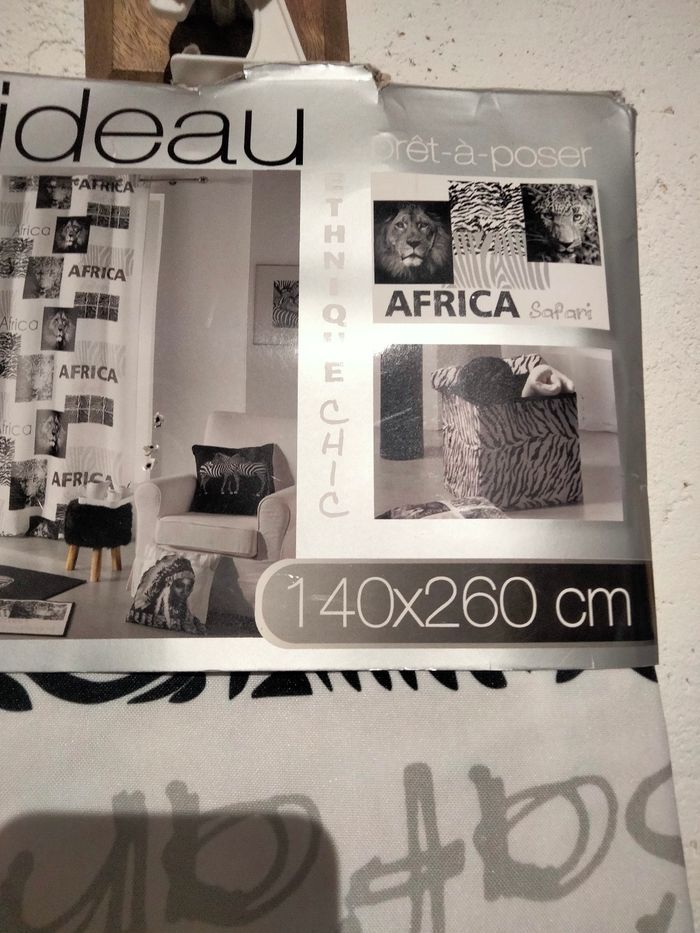 Rideau Africa Safari avec oeillets. Mesure 140x260 cm. Composition : 100% polyester. 4 de disponible (me demander si vous en voulez plusieurs) Neuf