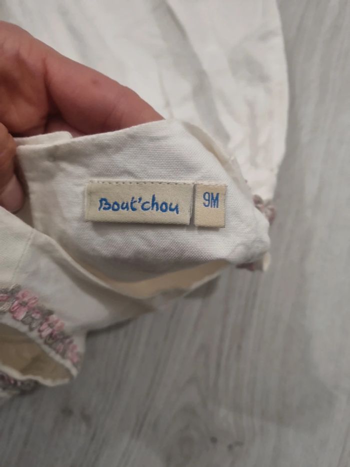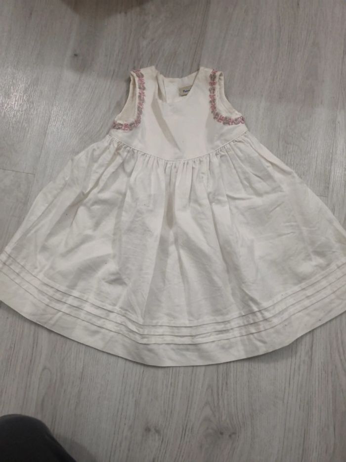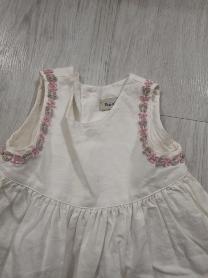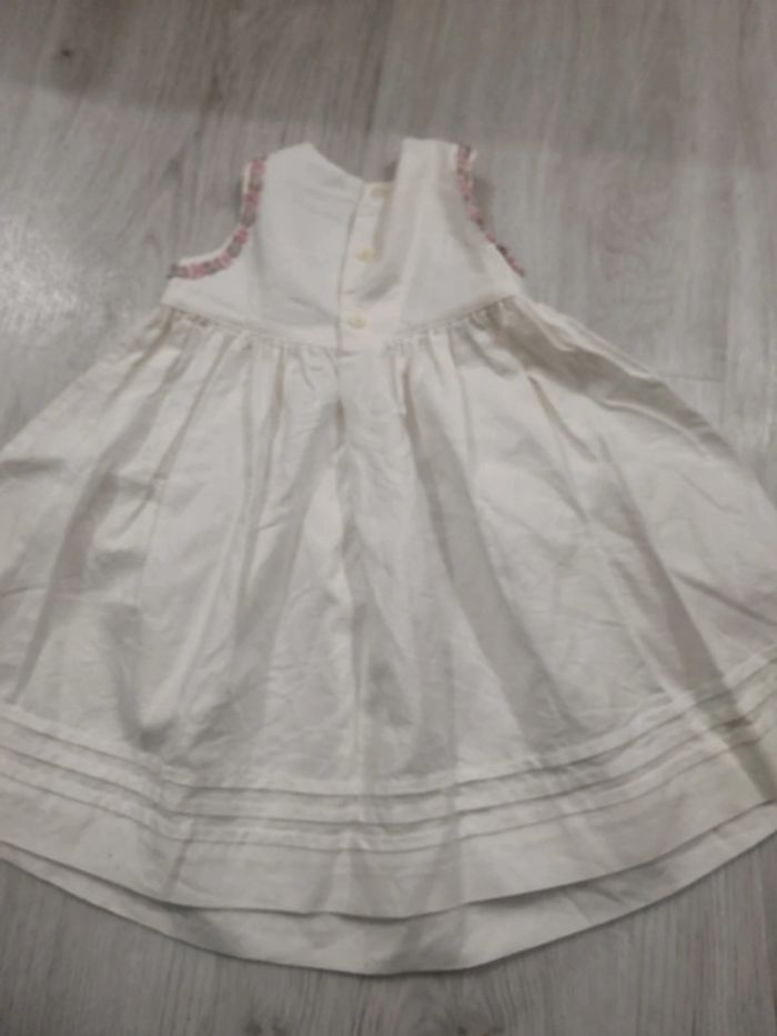 Robe bout chou blanche, sans manche, avec fleurs au niveau bras, 9 mois, tout coton #somara66fille9mois