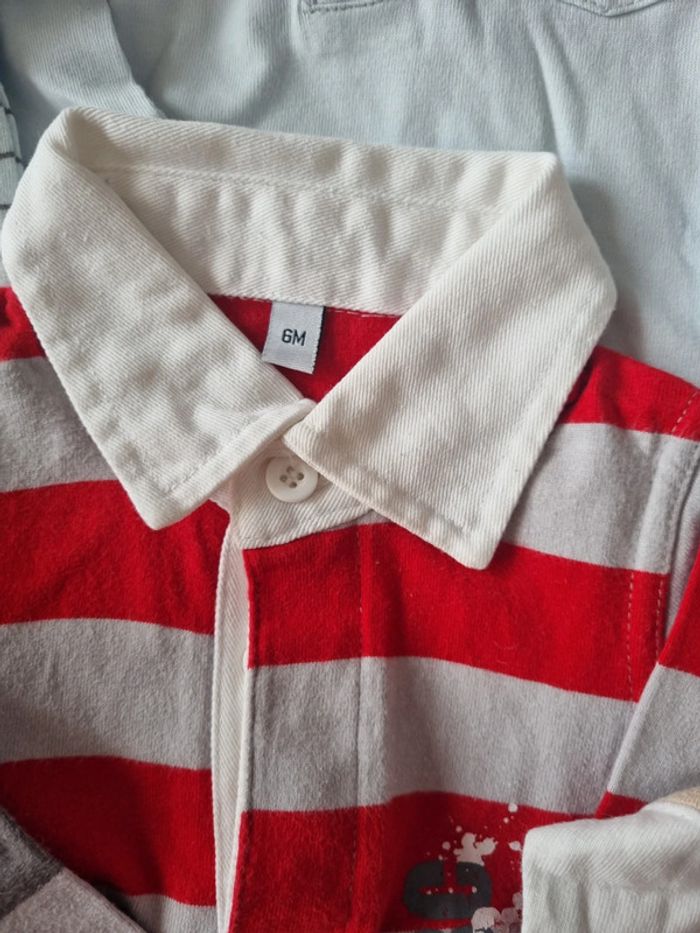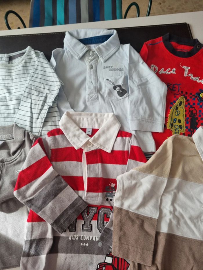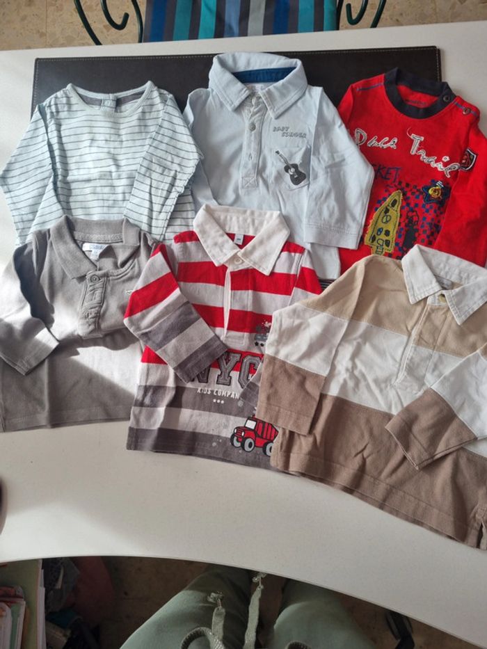 Lot 6 tee-shirts manches longues et polo 6 mois, tout coton. Quelques traces jaunies sur 3 cols #somara66garcon6mois
