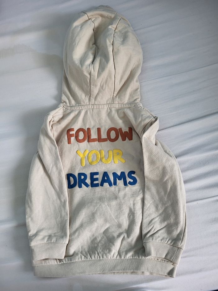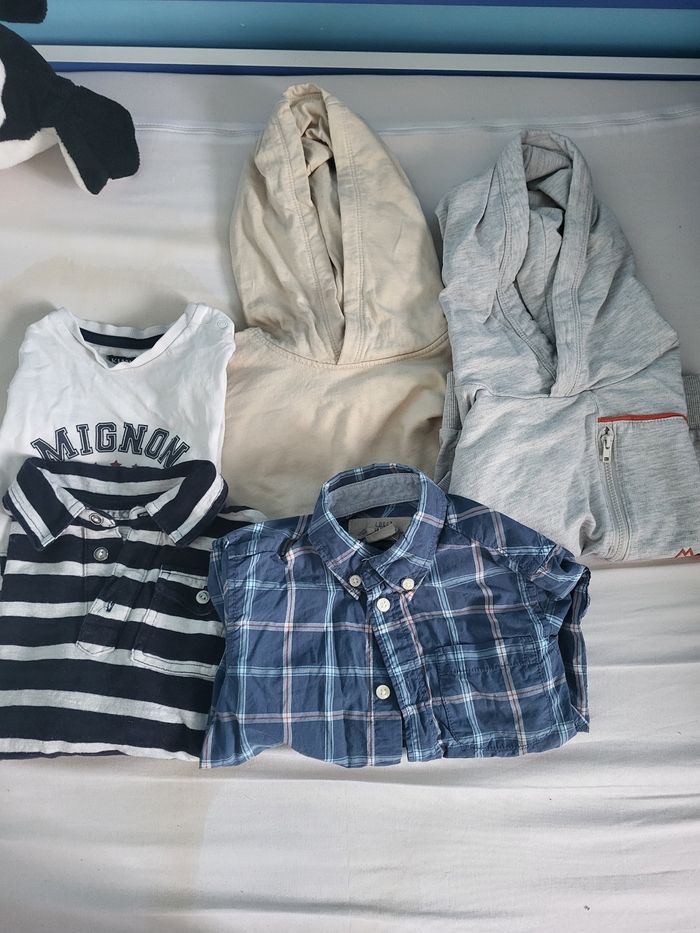 ⚠️Bien lire l'annonce ⚠️ Lot de hauts à manches longues: - sweat à capuche gris, Tape à l'oeil, très bon état, 3 ans ou 96 cm - sweat à capuche beige, 3 ans ou 98cm, bon état car quelques micro tâches, sans marque. Pas d'autres défauts - polo à rayures, manches longues ou courtes avec bouton pour accrocher, bon état car le prénom de l'enfant est écrit au feutre permanent à l'intérieur du col. Marque Baby Gap. 3 ans - t-shirt blanc, Kiabi, 94 cm ou 3 ans, très bon état - chemise à carreaux neuve, legère, H&M. 98 cm