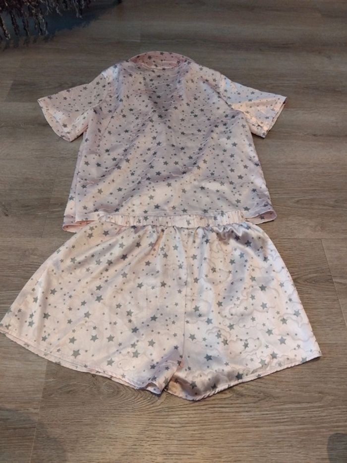 Bonjour, je vends ce pyjama rose et gris de la marque Asos taille 34 en très bon état. Lavé maison non fumeur.