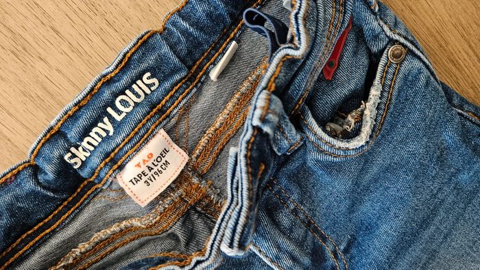 #cassandraft5bebetaille36mois #cassandraft5garçontaille3ans Jeans en très bon état. Seule l etiquette au dos (cachée en portant un t-shirt, est abîmée, voir photo) Prix d'achat 19,99€. #jeans #tao #tapealoeil #garcon #3ans #skinny #bleu #foncé