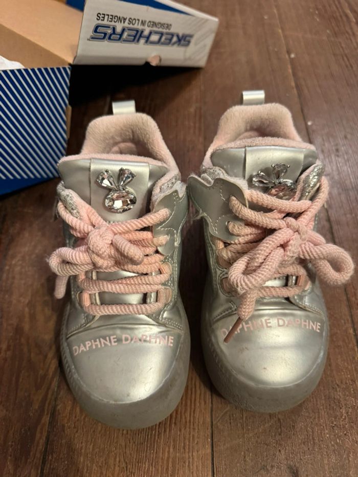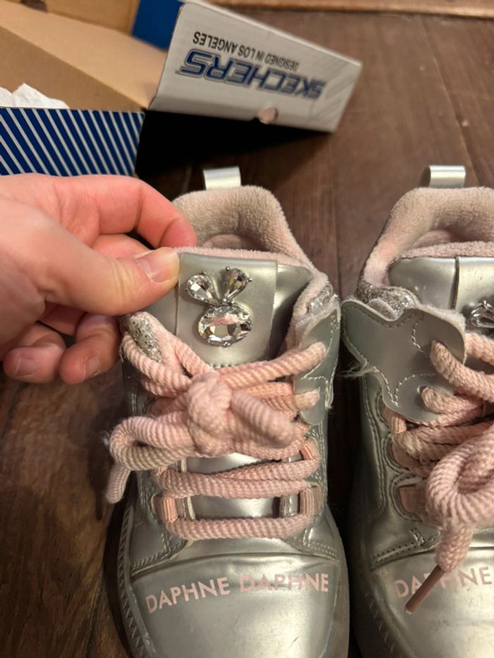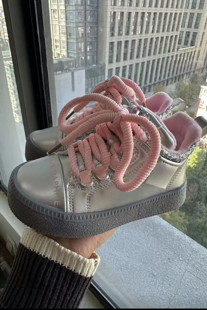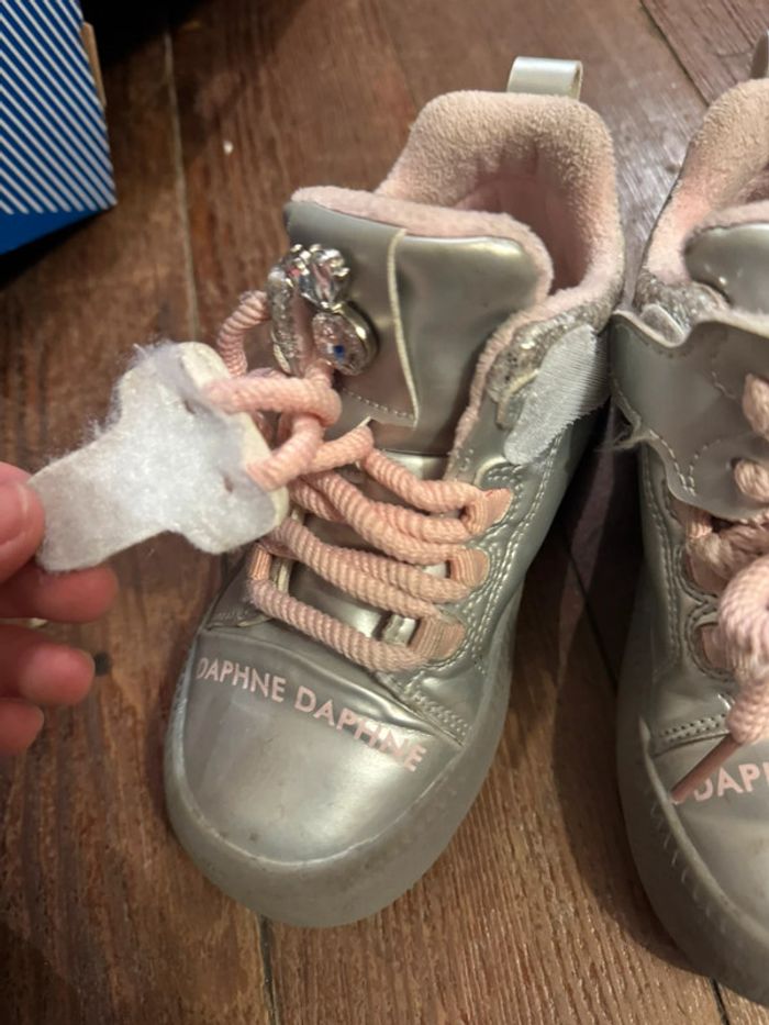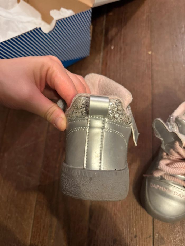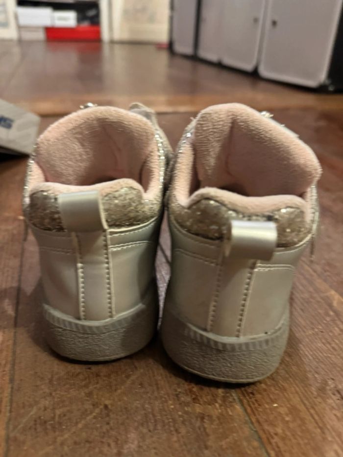 basket fille lacet scratch Très bon état Argenté pailleté rose Premier photo quand il a pas été porté Les photos suivantes état actuel #clemencechauss