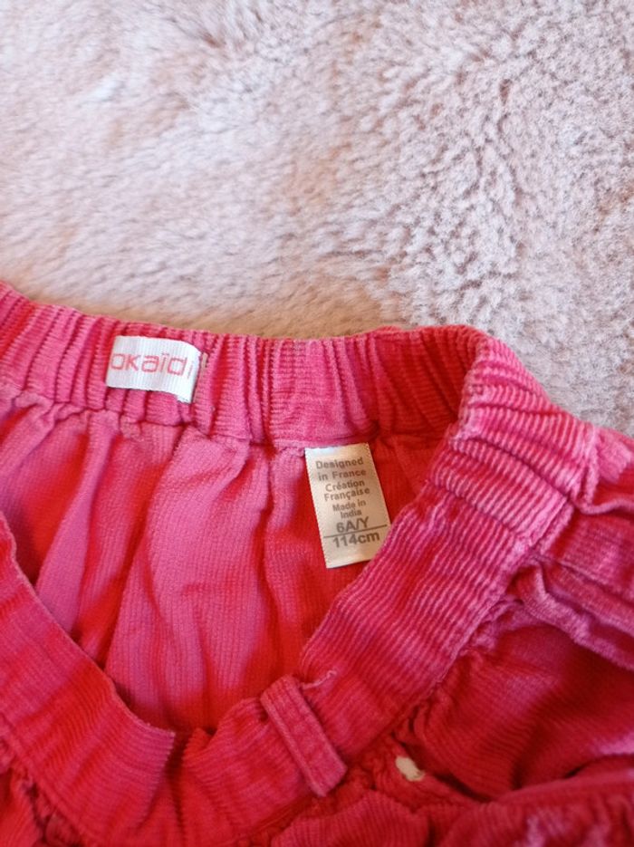 Jupe Okaïdi 6 ans En velours fin, finement côtelé, doublé coton à motif. Pour moi, c'est rose, d'autres diront peut-être que c'est rouge... J'avoue que j'ai du mal à déterminer la couleur. A été porté mais encore en bon état. Pour voir toutes mes annonces en 6 ans afin de constituer un lot et bénéficier de réductions : #nanoukou_fille_6ans Retrouvez tous mes autres liens dans mon profil avec toutes mes tailles disponibles, jouets, chaussures... Merci de me contacter avant tout achat via UPS et Vinted Go.