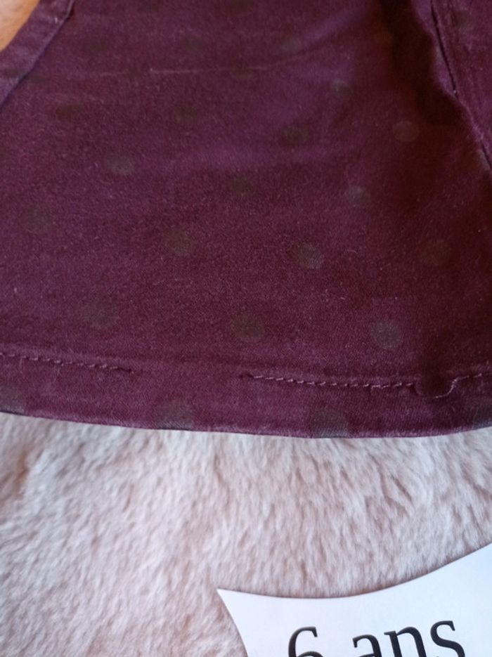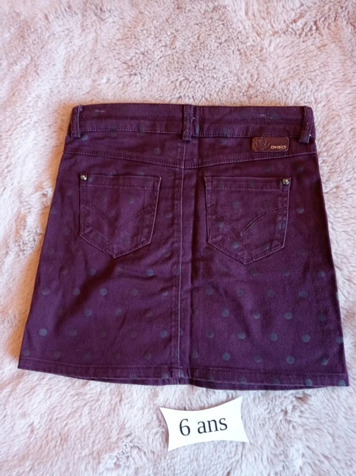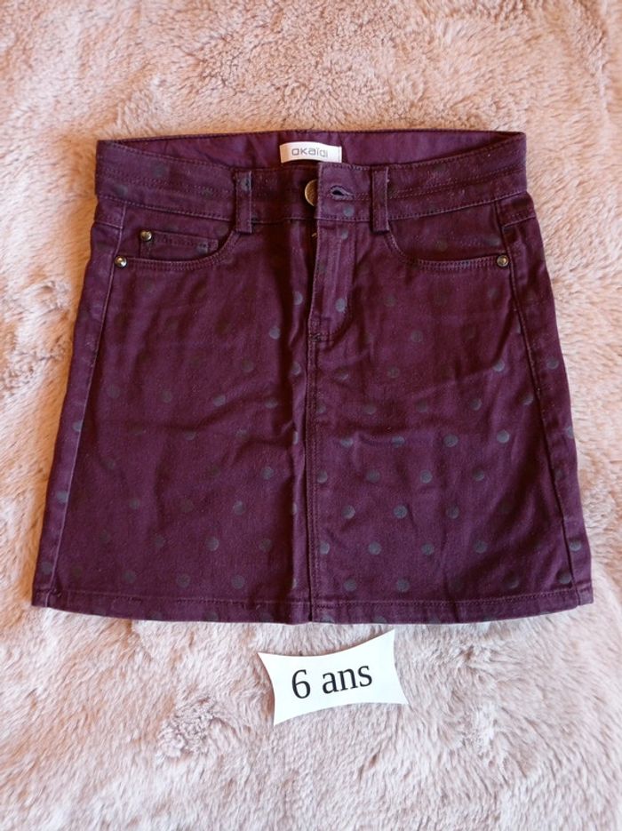 Jupe 5 poches de couleur prune, à pois.