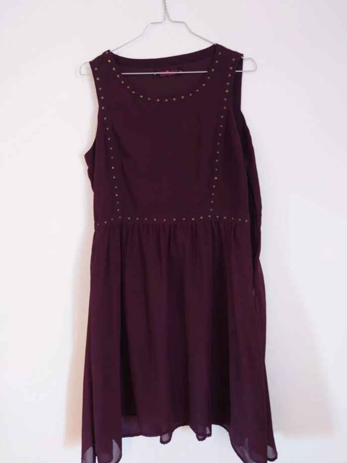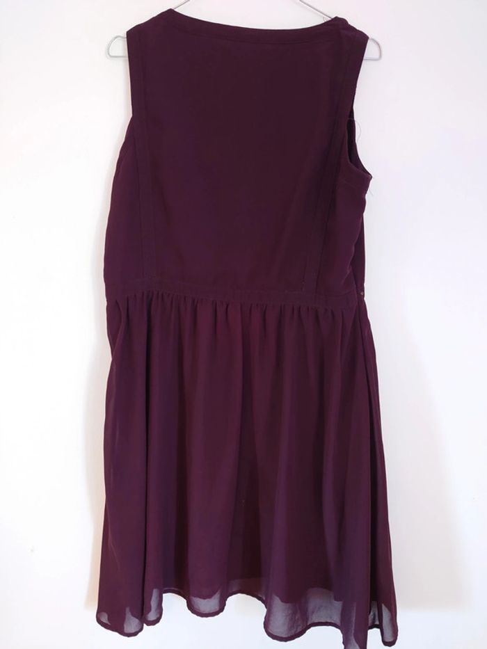 Robe en très bon état très jolie car cintrée un peu a la taille et jupe volantée de couleur bordeaux violet Elle est trop grande pour moi je l'ai juste portée le temps de ma grossesse (en faisant de base un 38 sans ventre) et elle était super confortable 😊 #chapitifemme42 #chapitifemmegrossesse