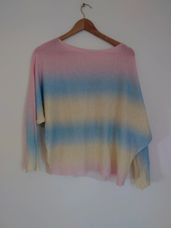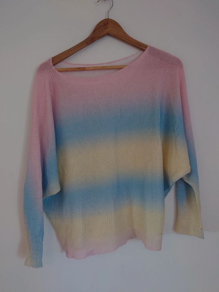 Haut mi saison manches longues chauve souris loose arc en ciel pastel - dressing trié par tailles - photo numéro 1