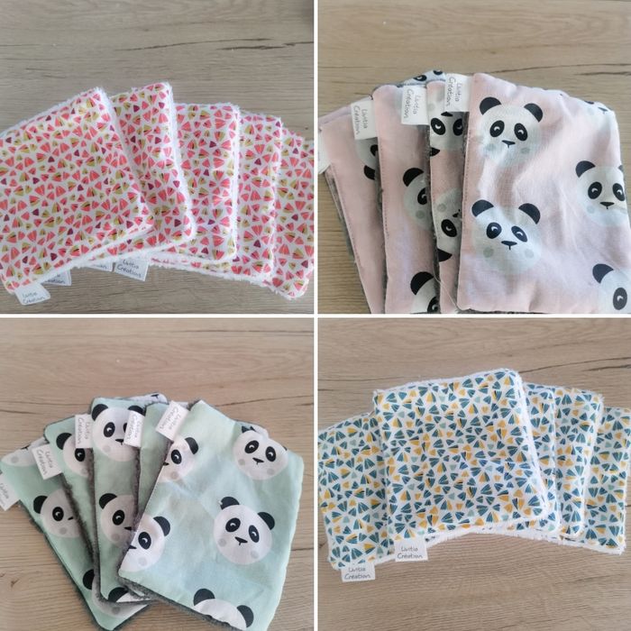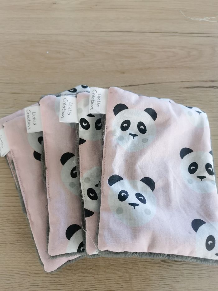 lingettes lavables bébé ou démaquillantes en lot de 5 12x12cm ou 15x12cm pour les pandas