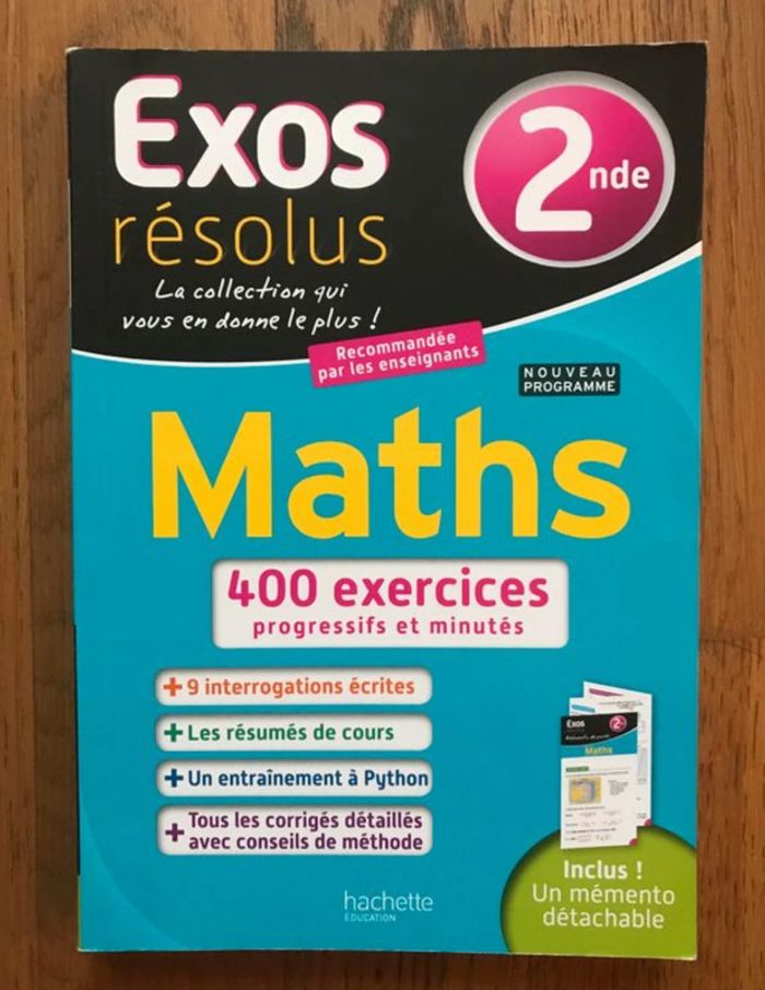 État neuf Maths 2nde Chaque titre présente des batteries d’exercices minutés, classés par thèmes et par niveaux de difficulté. Vous y trouverez : - des résumés de cours pour réviser les connaissances indispensables ; - des exercices d’entraînement pour assimiler les notions, s’exercer et se perfectionner ; - des exercices et un chapitre complet dédié à Python pour maitriser la programmation ; Soit 400 exercices !! - des interrogations écrites pour compléter ses révisions ; - tous les corrigés détaillés, avec de nombreux conseils + Un mémento détachable ! Proposé à 7,00 € #lyceedomi8084