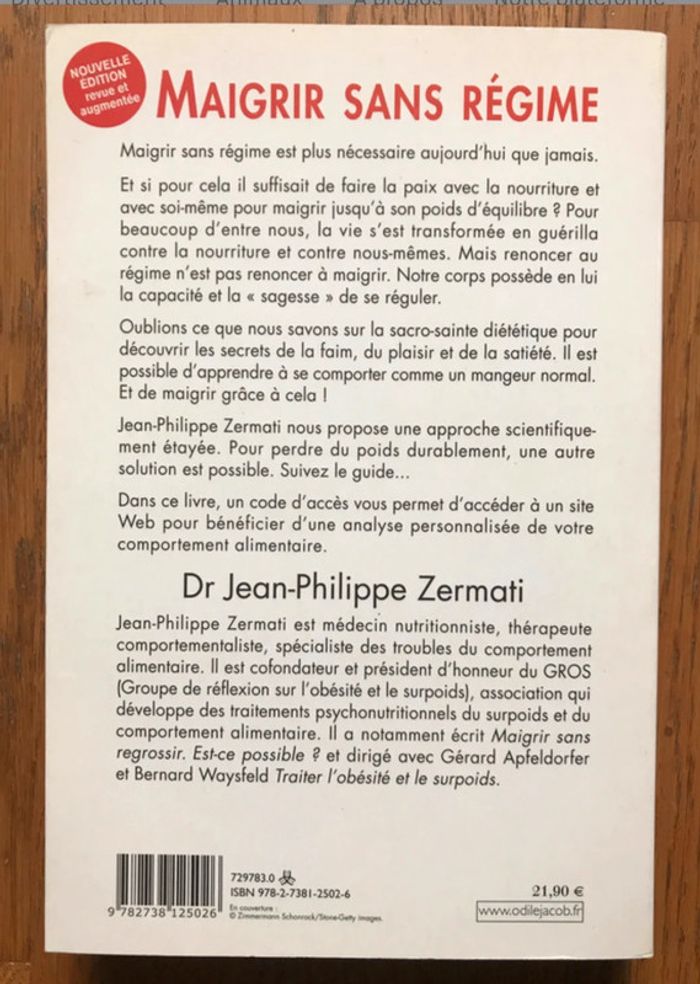 État neuf Et s'il suffisait de faire la paix avec la nourriture et avec soi-même pour retrouver le poids idéal ? Plus on fait de régimes et plus on grossit. Pire, on finit par ne penser qu'à ça. Pour nombre d'entre nous, la vie est devenue une guerre permanente contre la nourriture et contre nous-mêmes, dont nous sortons vaincus. Notre corps n'a-t-il pas en lui la capacité et la "sagesse" de se réguler ? Peut-être faut-il oublier tout ce que nous savons sur la sacro-sainte diététique pour apprendre à écouter nos sensations ? Jean-Philippe Zermati nous propose une approche novatrice qui bouleverse tout ce que nous savons de la nutrition et des régimes. Pour perdre du poids durablement, une autre solution est possible. Suivez le guide... Jean-Philippe Zermati est nutritionniste, médecin du sport et thérapeute comportementaliste. Il est vice-président du GROS (Groupe de Réflexion sur l'Obésité et le Surpoids), association qui développe des alternatives à la conduite des régimes. Proposé à 15,80 € - négociable #bibliodomi8084